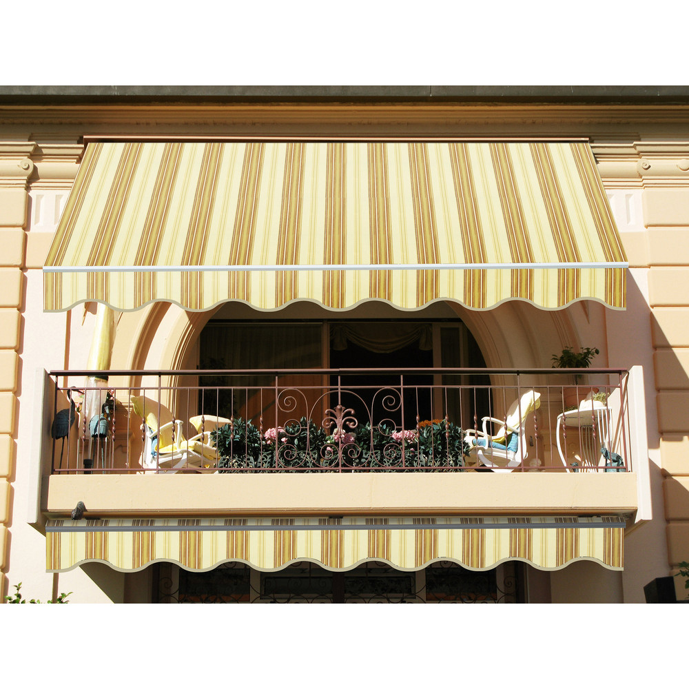 Tenda da sole avvolgibile ad inclinazione fissa con struttura in alluminio con barra quadra e telo in poliestere.