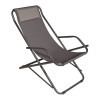 Sedia sdraio oscillante con telaio in tubo di alluminio Ø 25 mm e tessuto di poliestere 600D. Resiste al sole ed alle intemperie, adatta all'utilizzo in esterno. Lavabile con acqua e sapone.