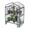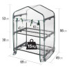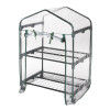 Serra piccola ideale per terrazzo, balcone e porticati per proteggere fiori, piantine nella stagione invernale. La struttura portante e i ripiani sono in acciaio verniciato a polveri epossidiche per una lunga durata. Apertura con cerniera arrotolabile verso l'alto, per un facile accesso ai ripiani. Senza telo può esser utilizzata nei mesi estivi come fioriera da esterno. Semplice e veloce da montare. Telo in PVC trasparente. Disponibile nella versione con ruote.