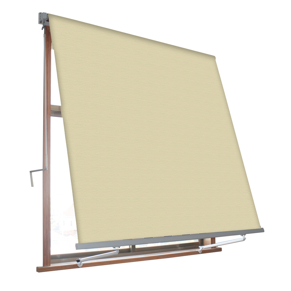 Tenda a caduta con braccetti da cm 80 ideale per balconi e terrazze. H 245x300 cm Rullo in alluminio Ø 58 mm. Attacco a parete. Copertura in poliestere gr/mq 280. Manovella da 150 cm. Disponibile in 4 varianti colore.