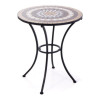 Realizzato in metallo verniciato con motivo a mosaico sul piano. Le dimensioni contenute lo rendono adatto anche a piccoli spazi. Dimensioni: Ø 60 cm/H. 73 cm Imballo: confezionato in scatola di cartone da assemblare.