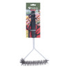 Spazzola per la pulizia del barbecue. Realizzata in acciaio con manico in plastica. Dimensione: 31 cm. Confezione: blister.